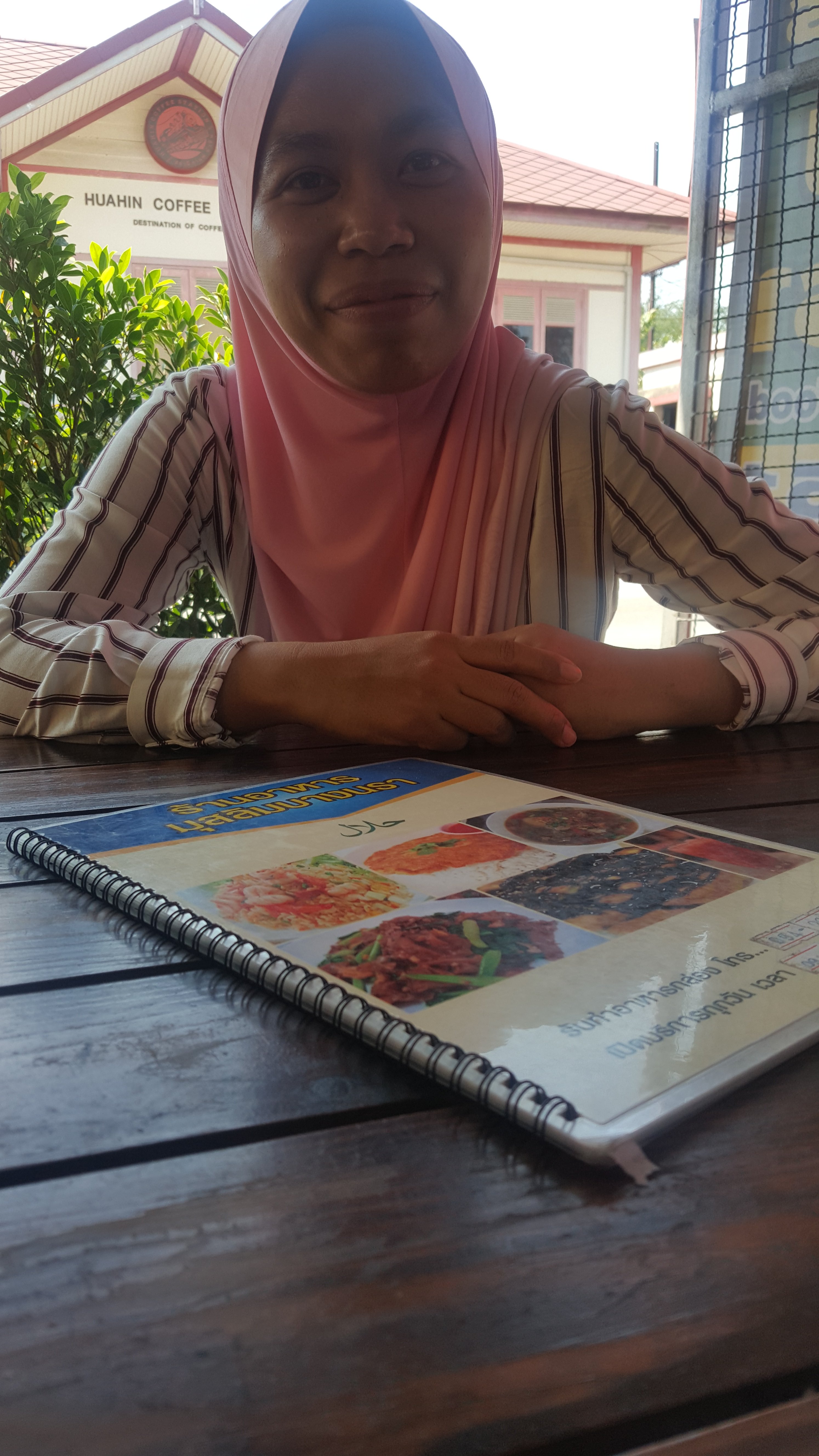 Lepas imigresen, pergi tanya harga teksi ke Hua Hin Railway Station THB400, tak jadi lah, cuba pula Grab, dapat harga THB200 tapi kena keluar dari airport tunggu tepi jalan. Sangguplah, jimat 50% tu. Sampai depan Railway Station ada kedai makan halal terbaik, termurah & tersedap. Makan satu set sup daging, telur dan sayur tambah nasi THB225. Dah siap makan, ingatkan nak beli pulut ayam kat gerai sebelah kedai tu, tapi dah tutup lah pulak. Tak ada rezeki. Dah kenyang tu menapak je lah terus ke Railway Station ambik gambar. Tunggu keretapi sampai jap untuk jadi prop.